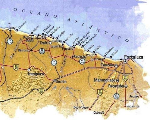Mapa a Costa do Sol Poente-Litoral Poente do Ceará